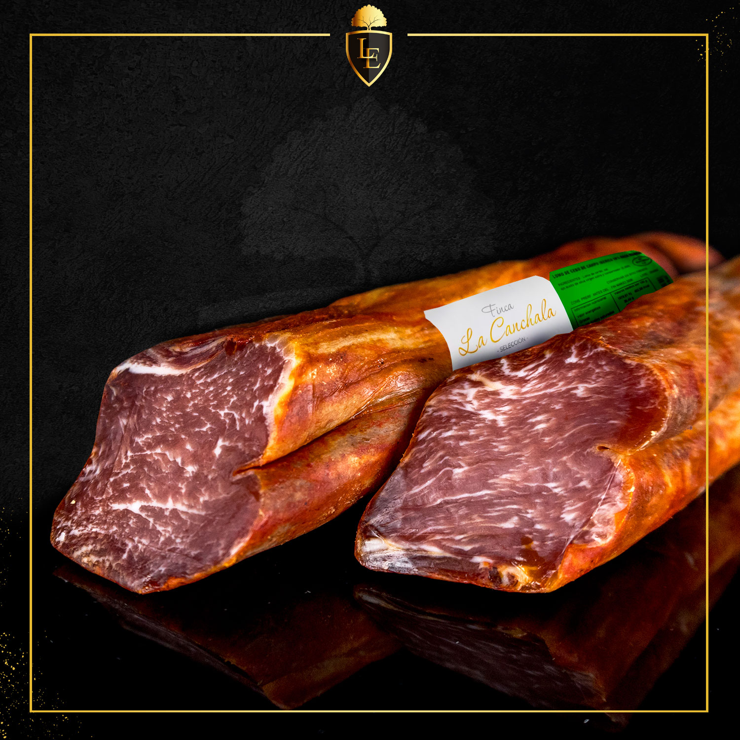 Lomo de cerdo ibérico, sal, ajo, aceite de oliva virgen extra y conservador (E-250).