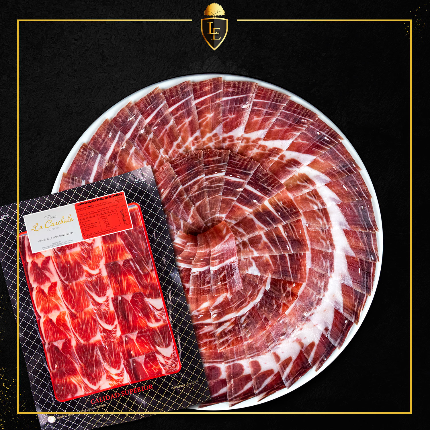Jamón de cerdo ibérico, sal, azúcares, conservadores (E-252,E-250) y antioxidante (E-316).